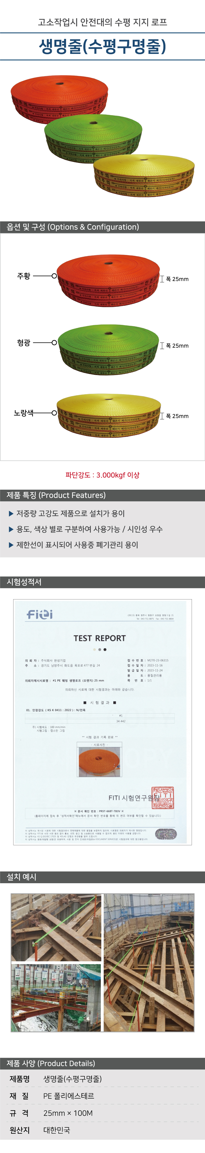 웨빙띠 수평구명줄