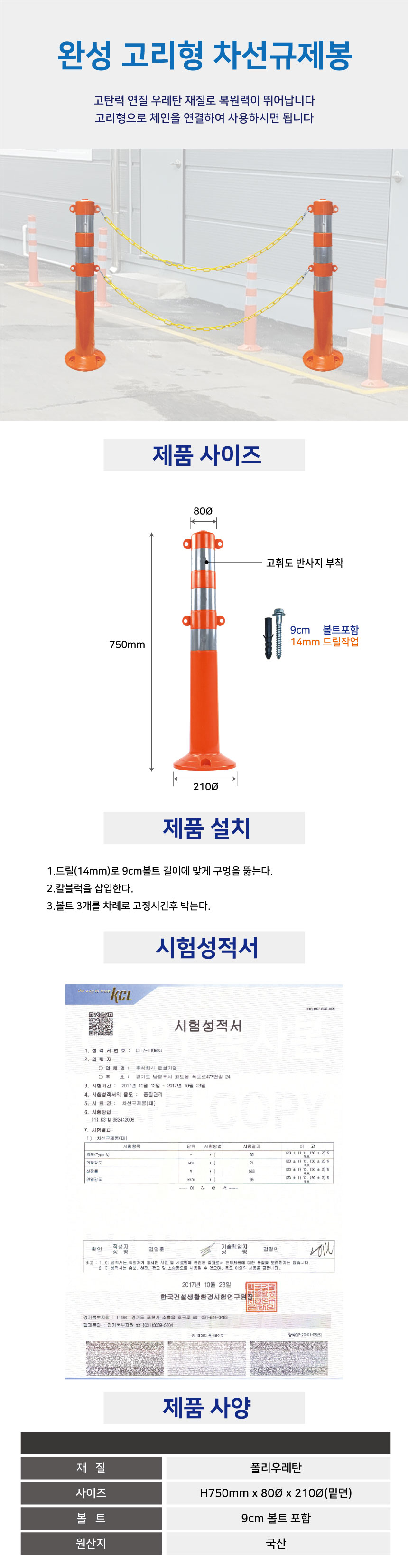 국산 고리형차선규제봉
